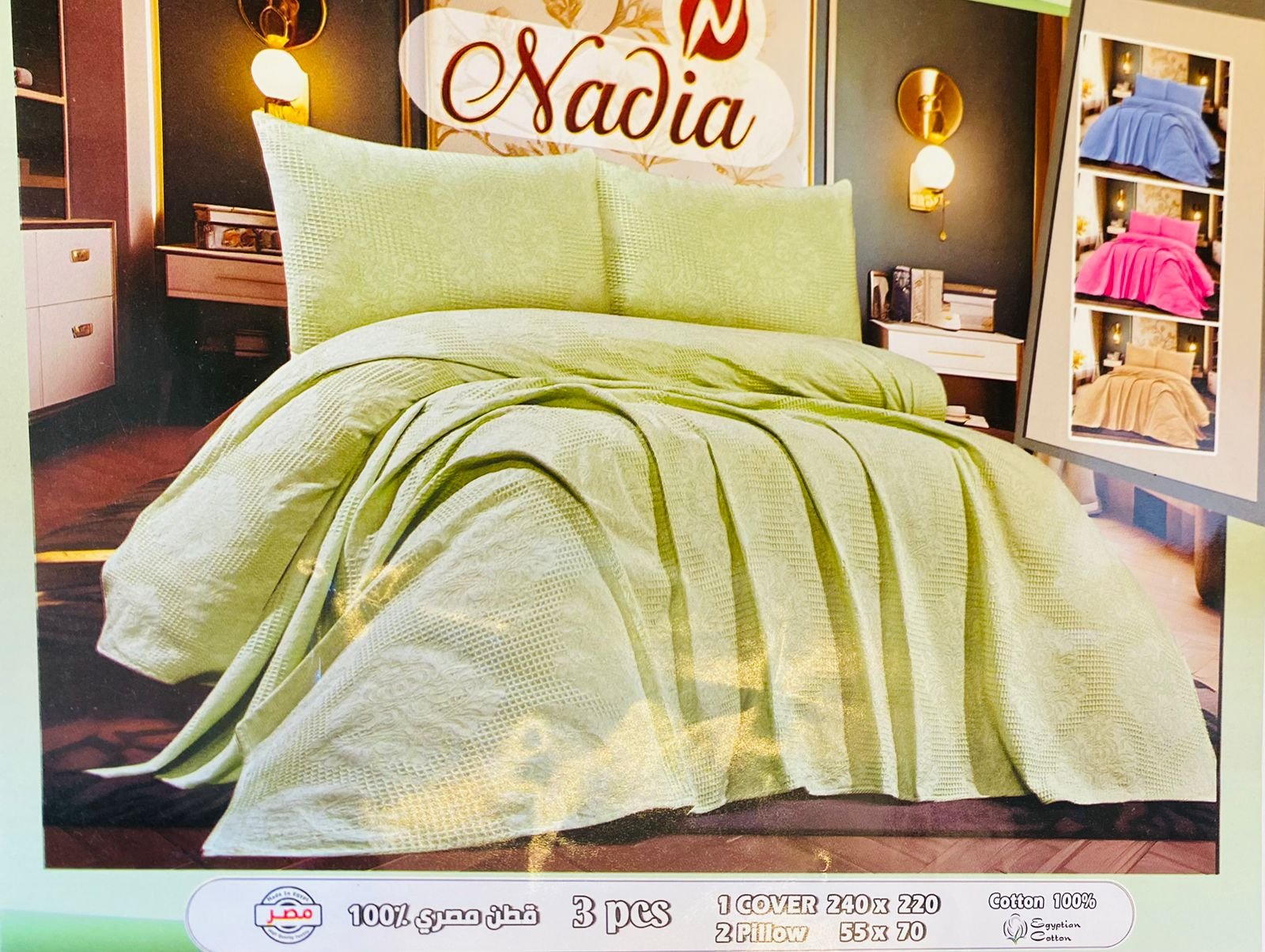 كوفرتة نادية 3 قطع بيكا سادة قطن (2117)
